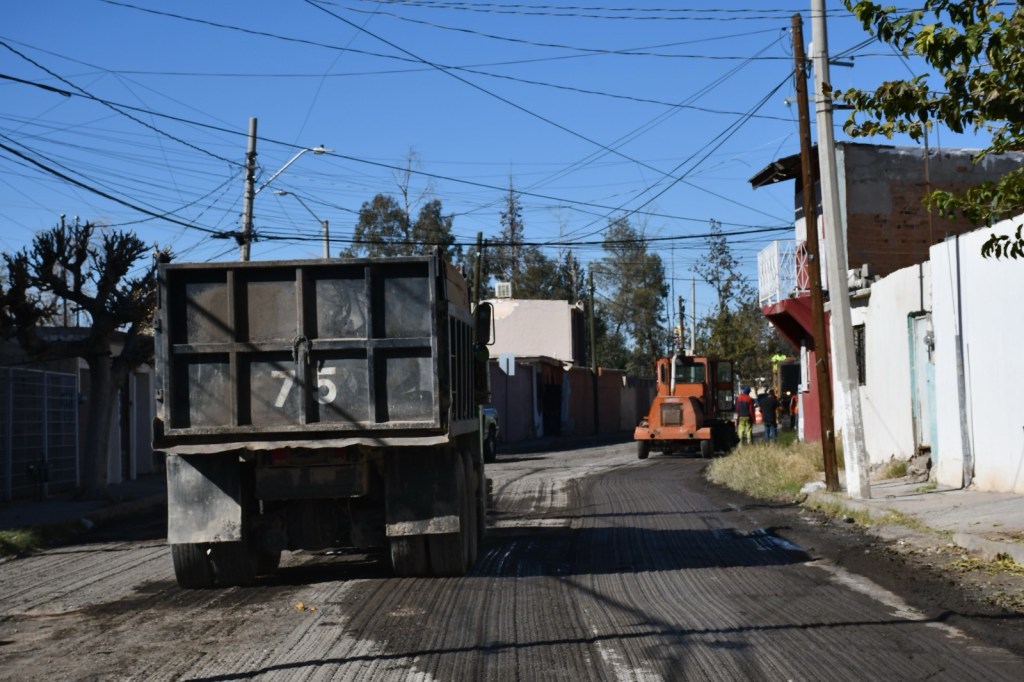 Como parte del programa de Mejoramiento de Vialidades, la Dirección General de Obras Públicas realiza trabajos de rehabilitación en la calle Aguirre Laredo, en el tramo que va de la avenida Plutarco Elías Calles a la Adolfo López Mateos.