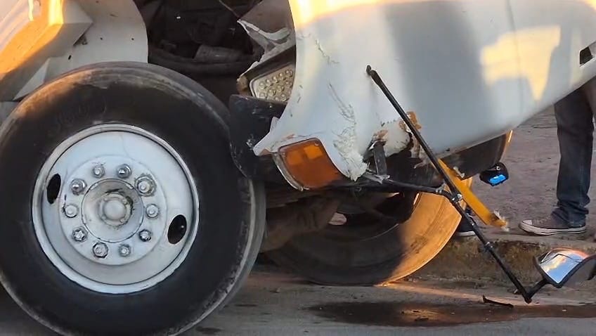 De acuerdo con los primeros reportes, un camión de transporte de personal impactó por alcance a un vehículo color blanco, el cual salió proyectado y terminó chocando contra un automóvil rojo.