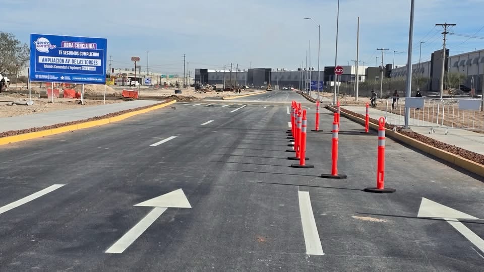 La gobernadora Maru Campos Galván inauguró la prolongación de la avenida de Las Torres en Ciudad Juárez, obra con inversión de 35 millones de pesos.