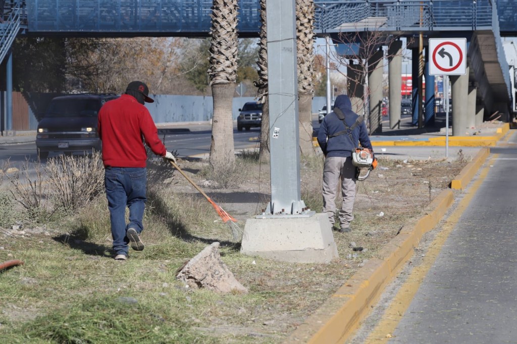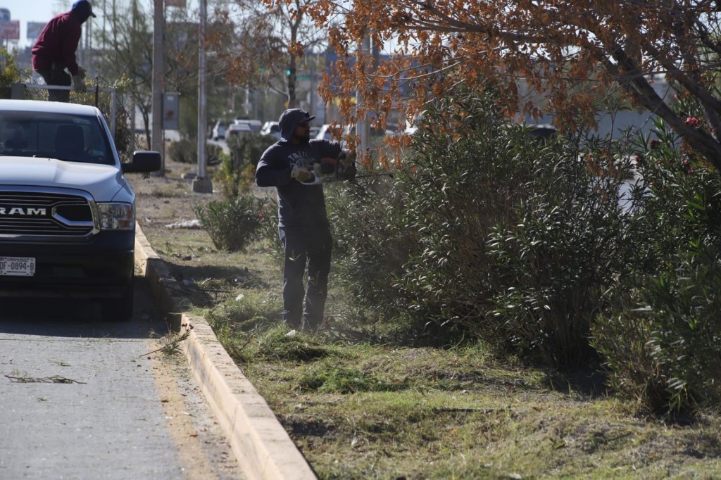 La Dirección de Parques y Jardines continúa con labores de mantenimiento en el camellón central de la avenida Tecnológico, como parte del compromiso de mejorar la imagen urbana.