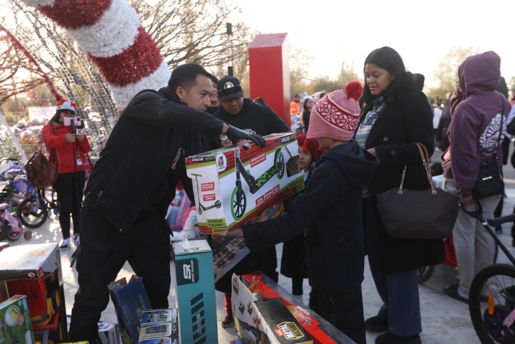 Durante el evento, el alcalde deseó una Feliz Navidad a las familias, mientras se informó que alrededor de 3 mil 500 personas acudieron para recibir juguetes entregados por Bomberos y Rescate.
