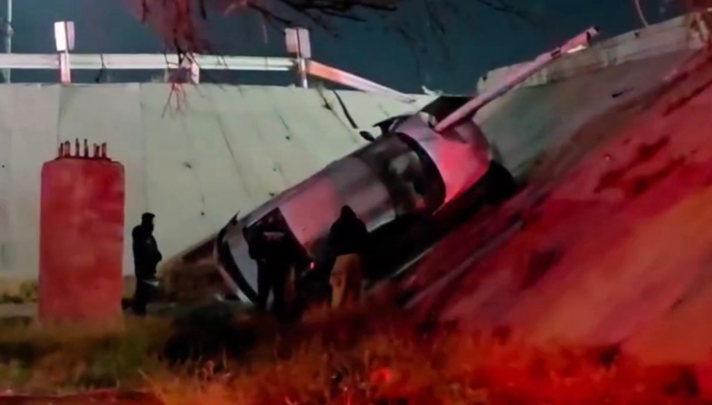 Los hechos fueron en avenida Tecnológico y Ejército Nacional, cuando el vehículo de la marca Nissan a exceso de velocidad impactó la barrera y cayó del Puente, provocando serias lesiones al conductor.
