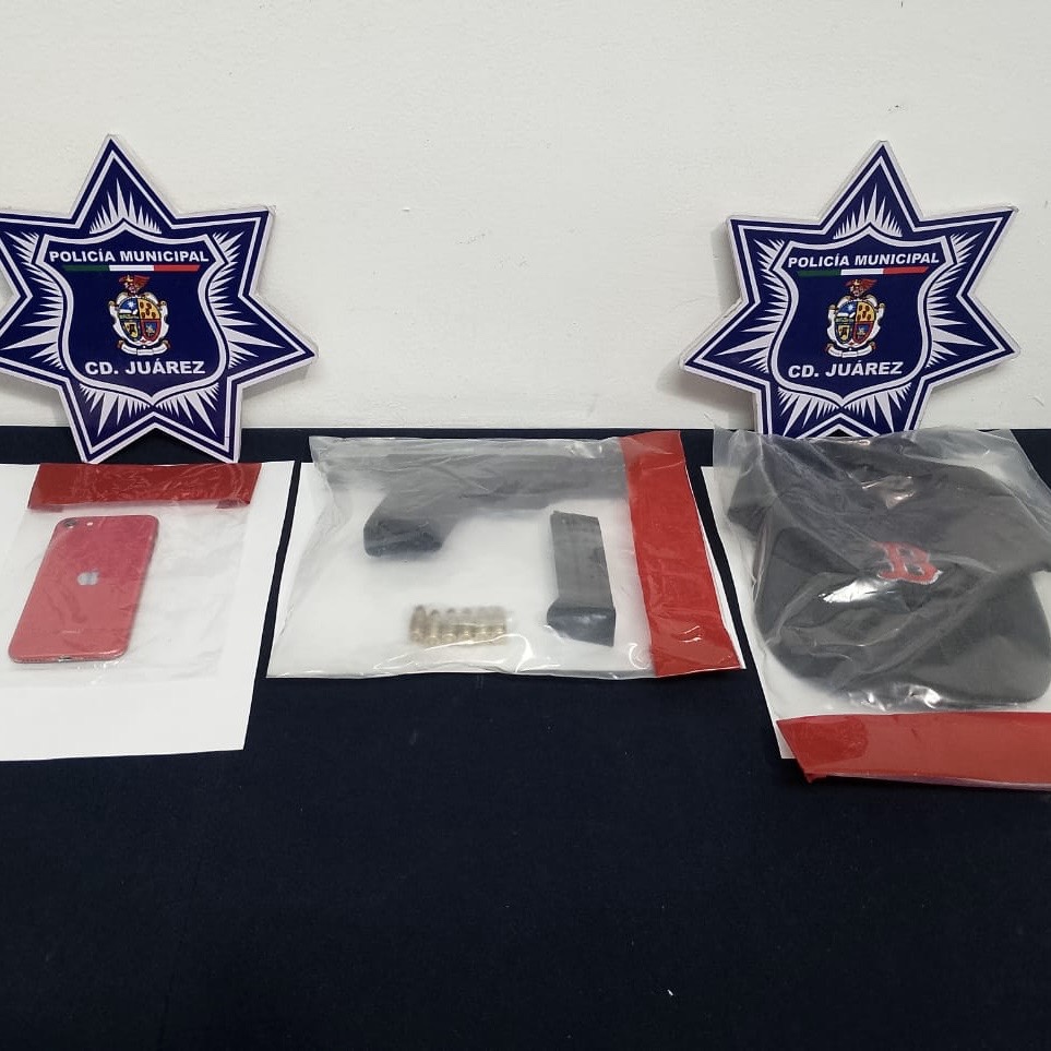 El detenido huyó hacia un terreno baldío en Justo Sierra y Ejido Parritas, colonia Manuel Valdez, donde fue alcanzado; le aseguraron una pistola 9 milímetros, un iPhone rojo y una gorra.