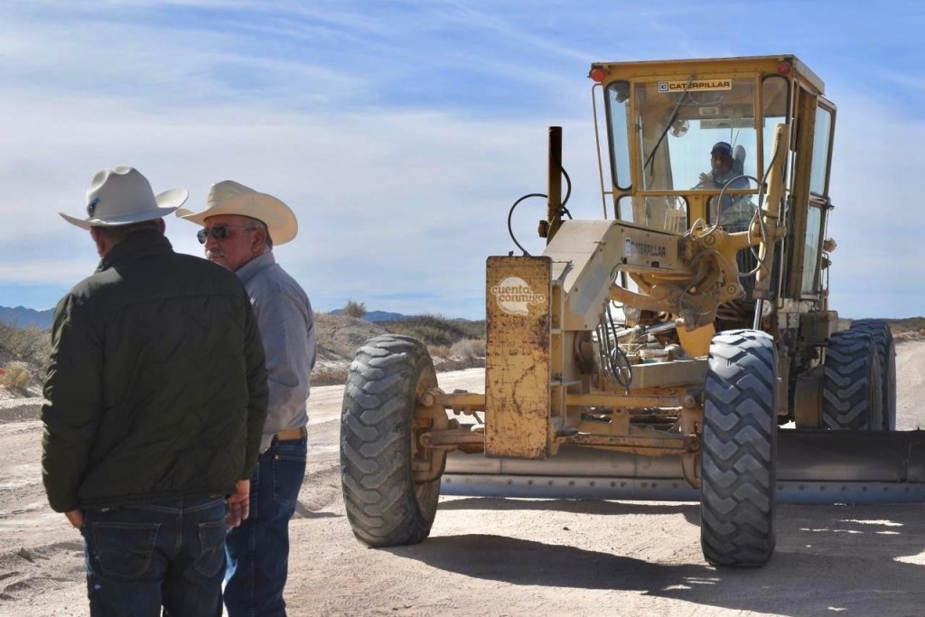 La inversión ronda los 450 mil pesos, con 200 horas de motoconformadora para rehabilitar cerca de 50 kilómetros, incluyendo caminos hacia el Guardián del Desierto y zonas ejidales.
