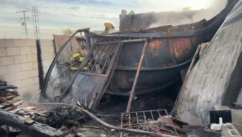 Un incendio consumió un cuarto de lámina usado para elaborar chicharrones en una vivienda de la colonia Santa María, ubicada en el cruce de las calles Francisco Portillo y Lorenzo Bracamontes.