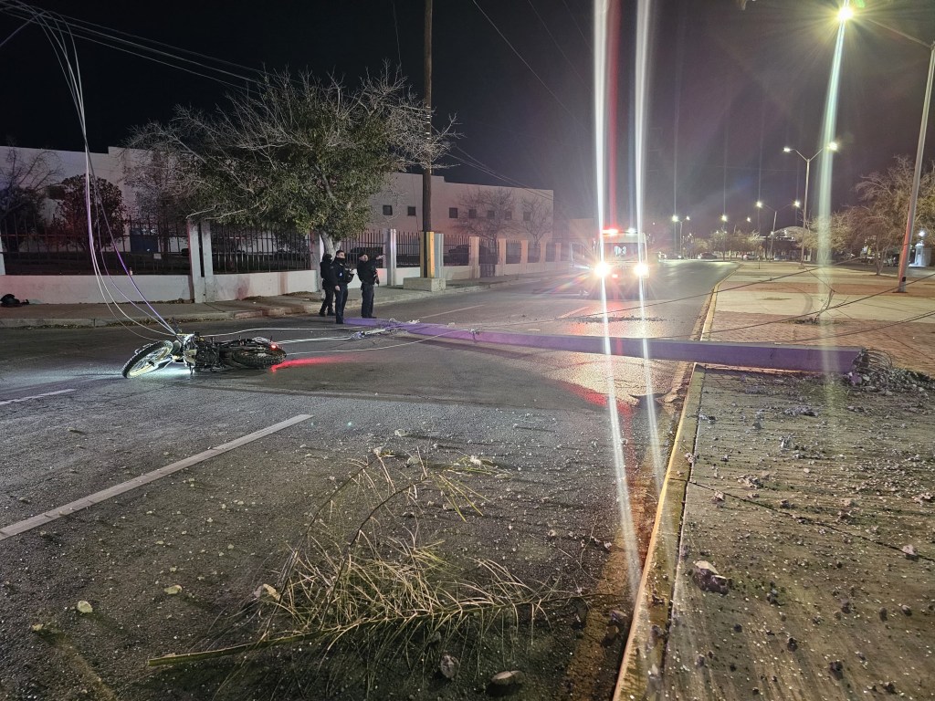 Un conductor derribó tres postes de concreto y escapó del lugar con su vehículo todavía en marcha, tras un aparatoso accidente registrado la noche del martes en Ciudad Juárez.