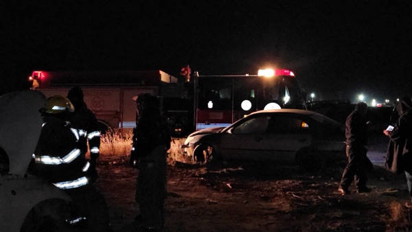 Bomberos acudieron para controlar llamas, registrándose daños en seis vehículos asegurados, incluidos una Ford F150, una Ranger, Explorer, Dodge Durango y otros calcinados del predio.
