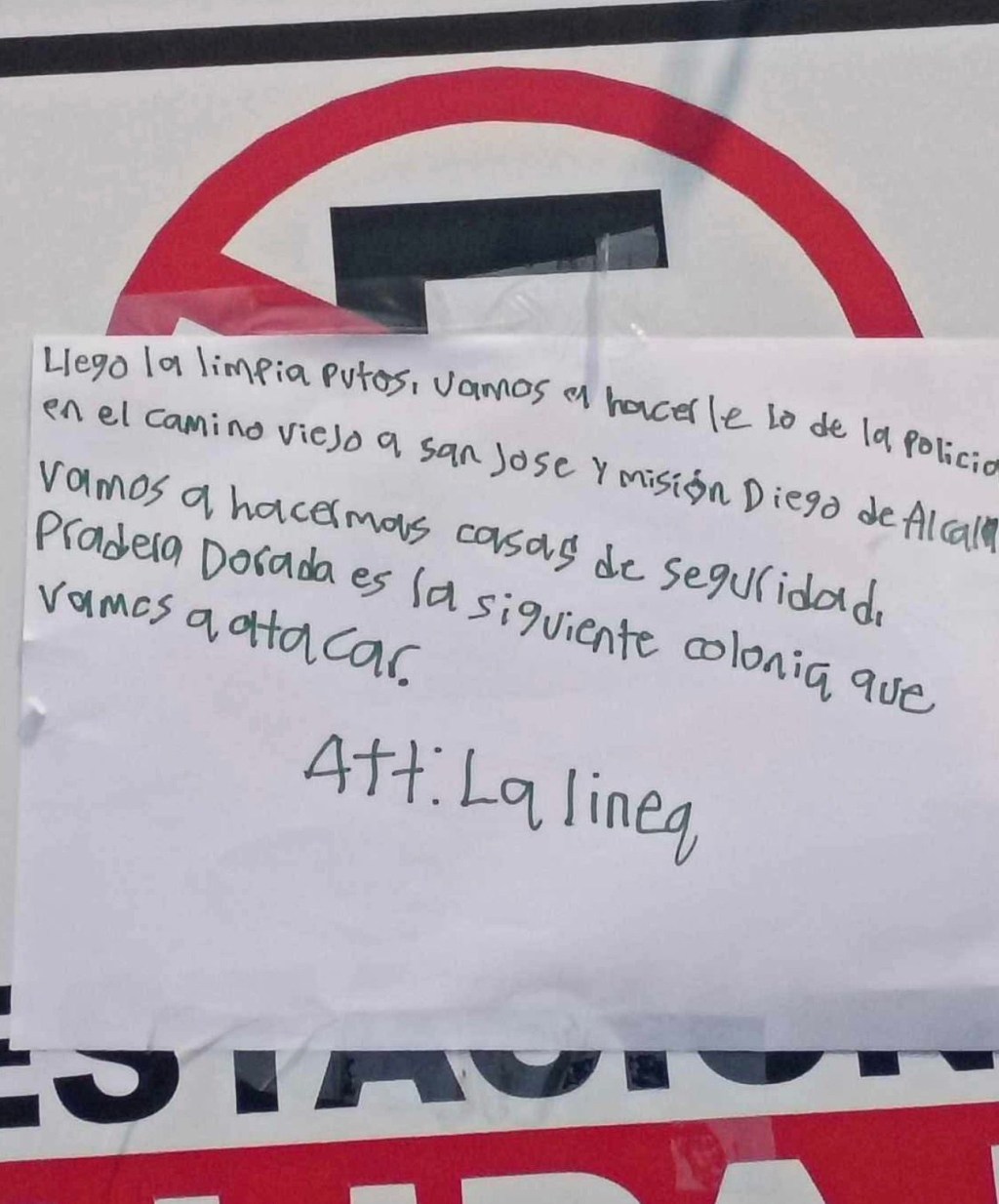 El mensaje menciona además los hechos pasados en Camino Viejo San José y Misión Diego de Alcalá, donde fue asesinado un ex policía municipal.