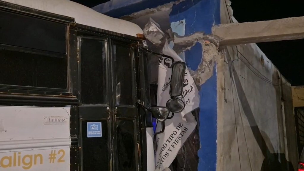 Luego del impacto, el camión se proyectó contra la barda frontal de una vivienda ubicada en la esquina con la calle Desierto de los Leones.