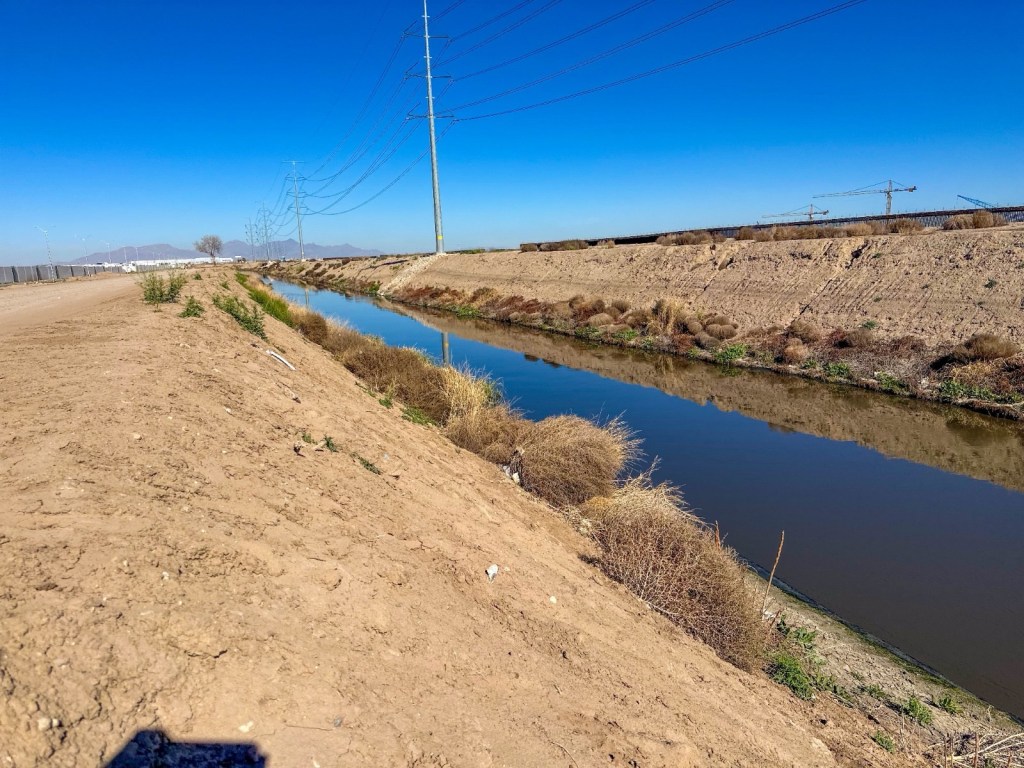 La Junta Municipal de Agua y Saneamiento de Juárez construye un canal de agua tratada desde la Planta Tratadora Sur hacia el dren interceptor de la Comisión Nacional del Agua.