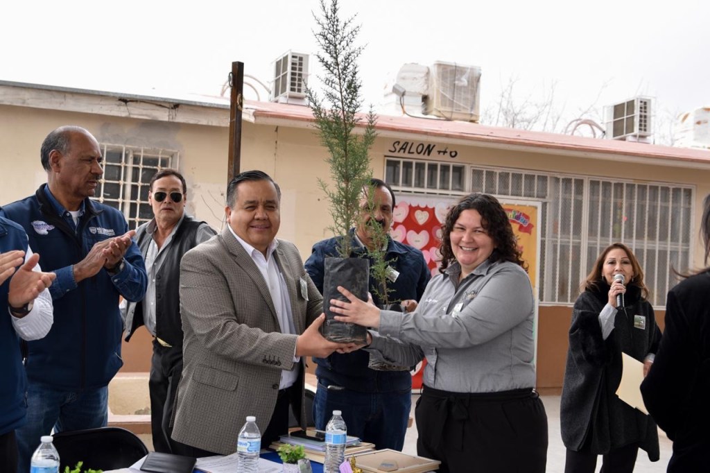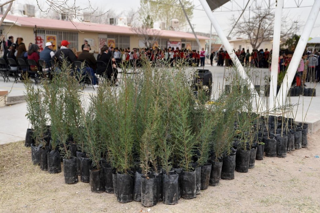 El Gobierno del Estado de Chihuahua entregó 650 árboles a primarias del suroriente de Ciudad Juárez para el proyecto Creando Ambientes Agradables con Áreas Verdes en mi Escuela, buscando mejorar la sombra dentro de los planteles.