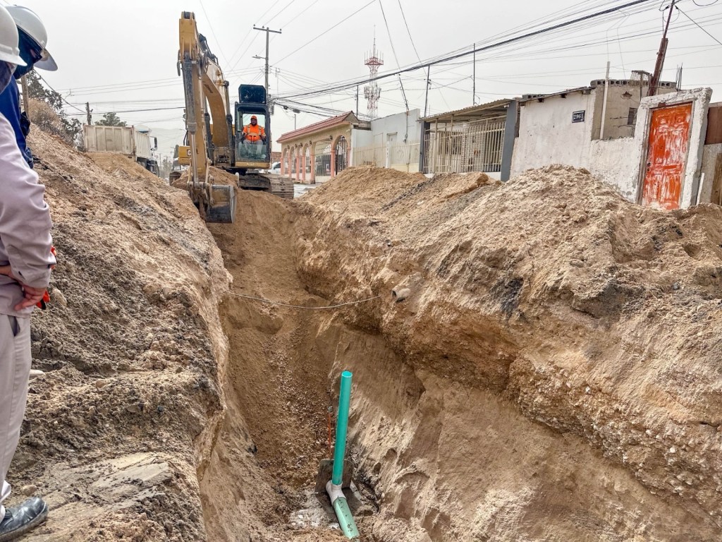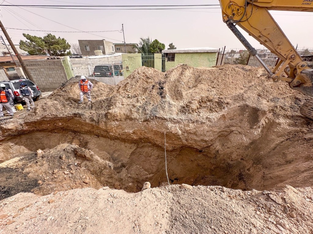 La Junta Municipal de Agua y Saneamiento de Juárez trabajó en la reparación de un hundimiento en la avenida División del Norte, cruce con Ignacio Alatorre y Pinotepa, en Ciudad Juárez, para restablecer el sistema sanitario afectado.