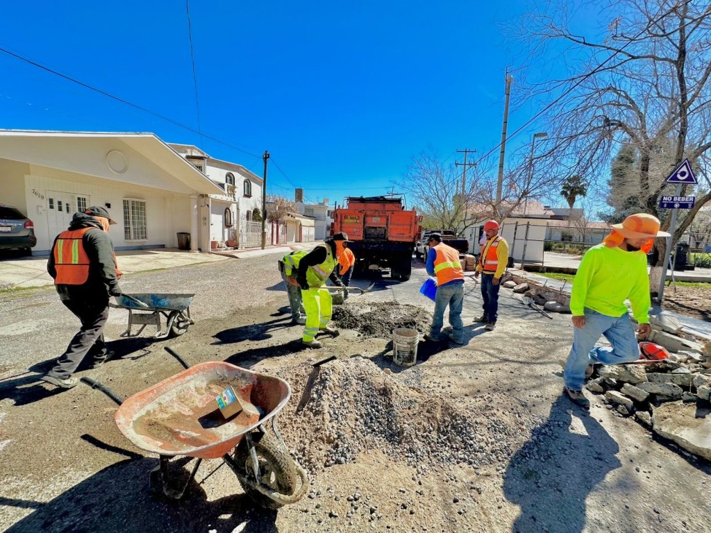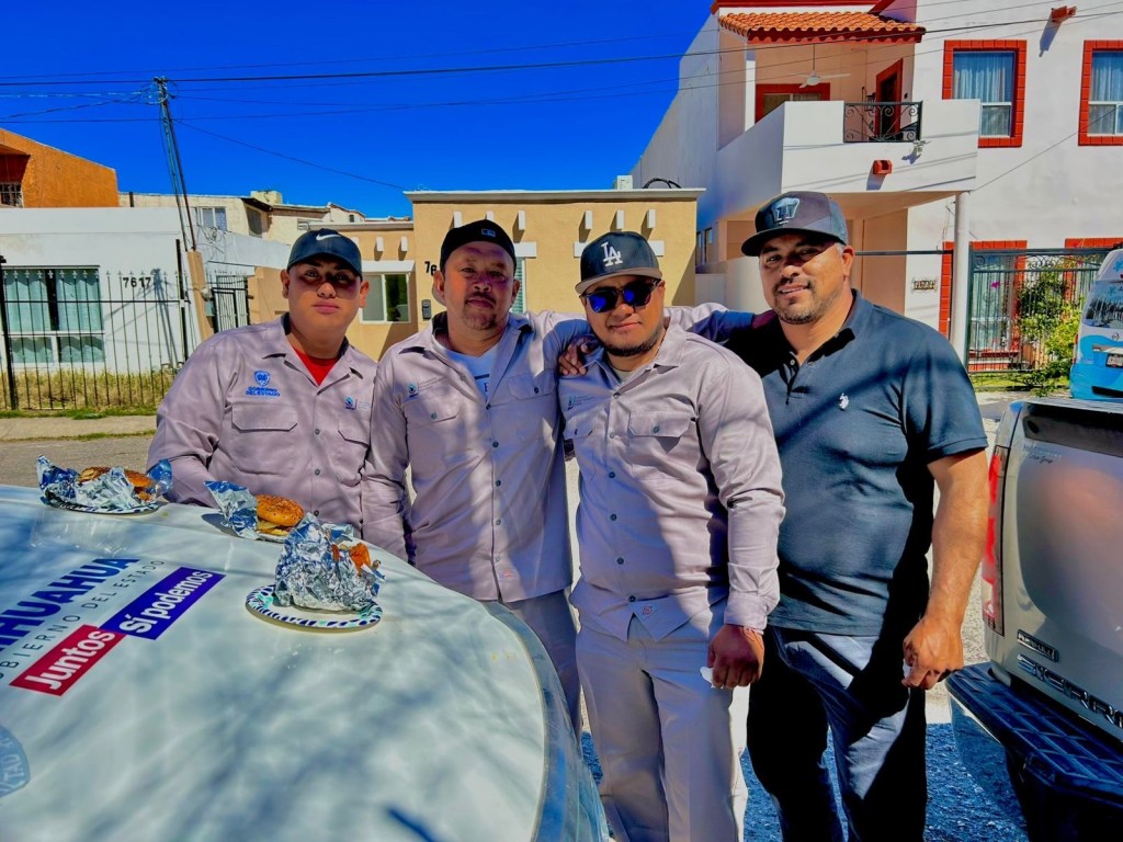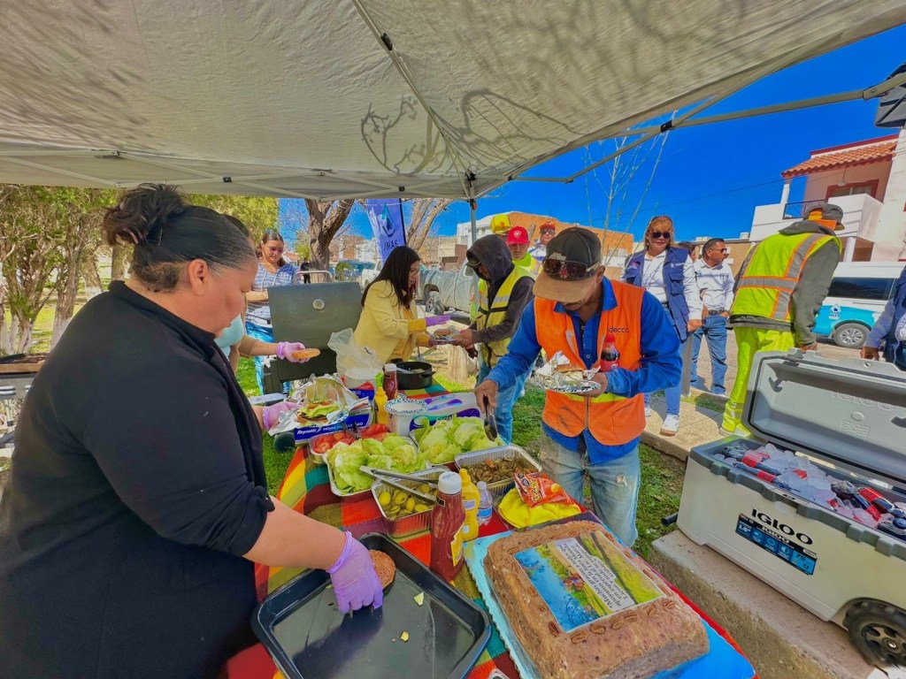 Vecinos del fraccionamiento Jardines del Seminario organizaron una convivencia para agradecer a trabajadores de la Junta Municipal de Agua y Saneamiento de Juárez por obras recientes de bacheo, banquetas y la instalación de la línea morada.