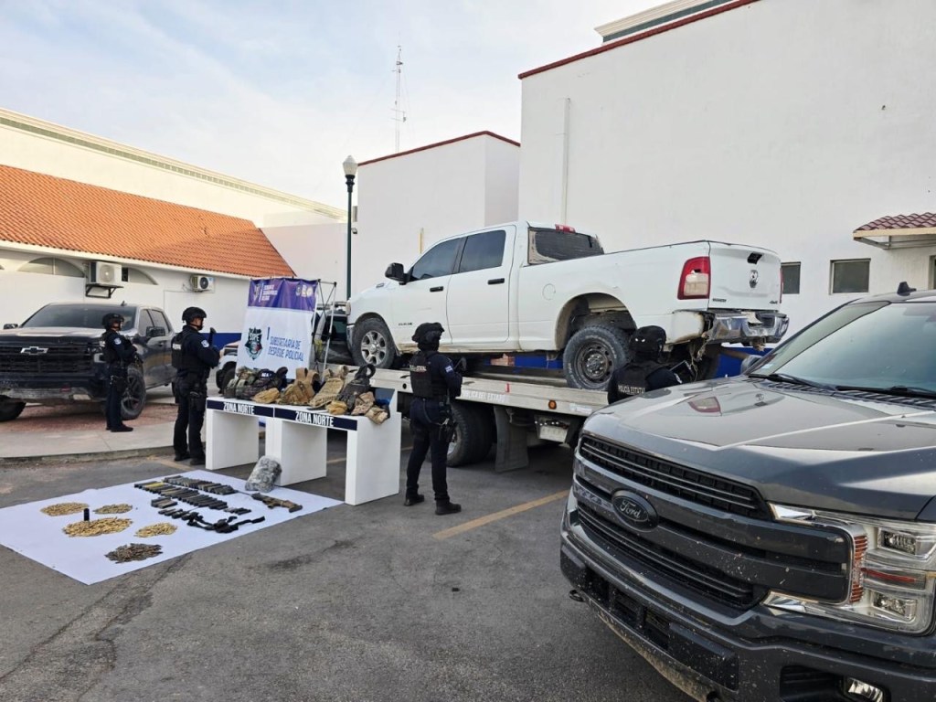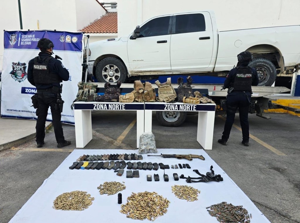 Más de 40 elementos de la Secretaría de Seguridad Pública del Estado de Chihuahua desplegaron un operativo en el valle de Ciudad Juárez, donde detuvieron a 2 mujeres y aseguraron droga, vehículos y armamento.