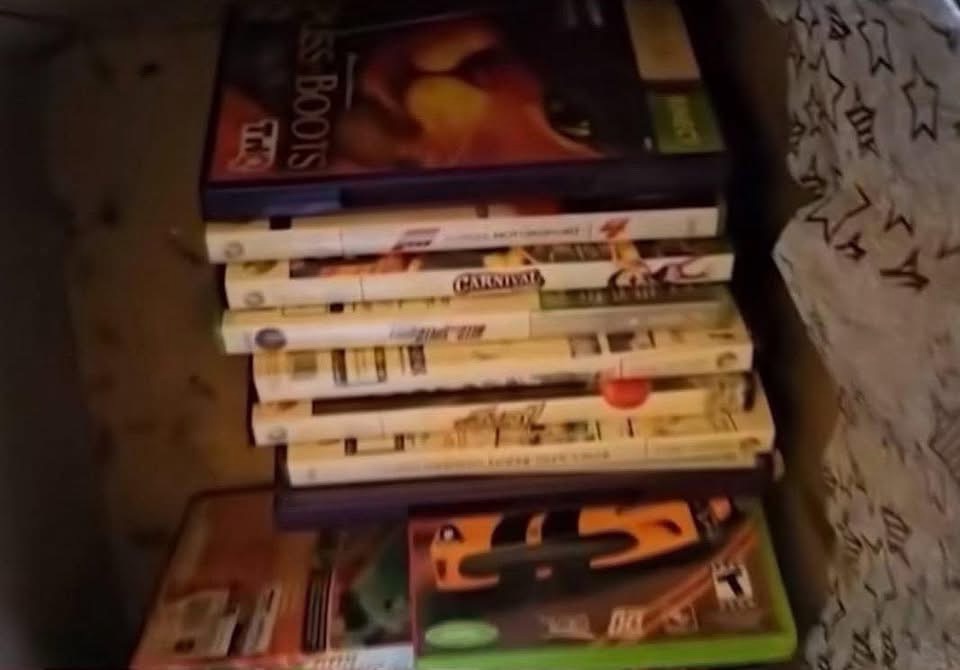Uno de los hallazgos que más llamó la atención fue una consola Xbox con varios videojuegos físicos. Entre los títulos encontrados estaban Call of Duty, FIFA, Forza Motorsport y Kinect Disneyland Adventures.