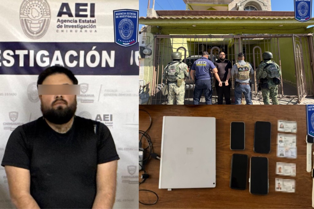 Elementos de la Agencia Estatal de Investigación detuvieron a Francisco Manuel C. V. durante un cateo realizado en un domicilio de la colonia Hacienda de las Torres, por su presunta responsabilidad en fraude.