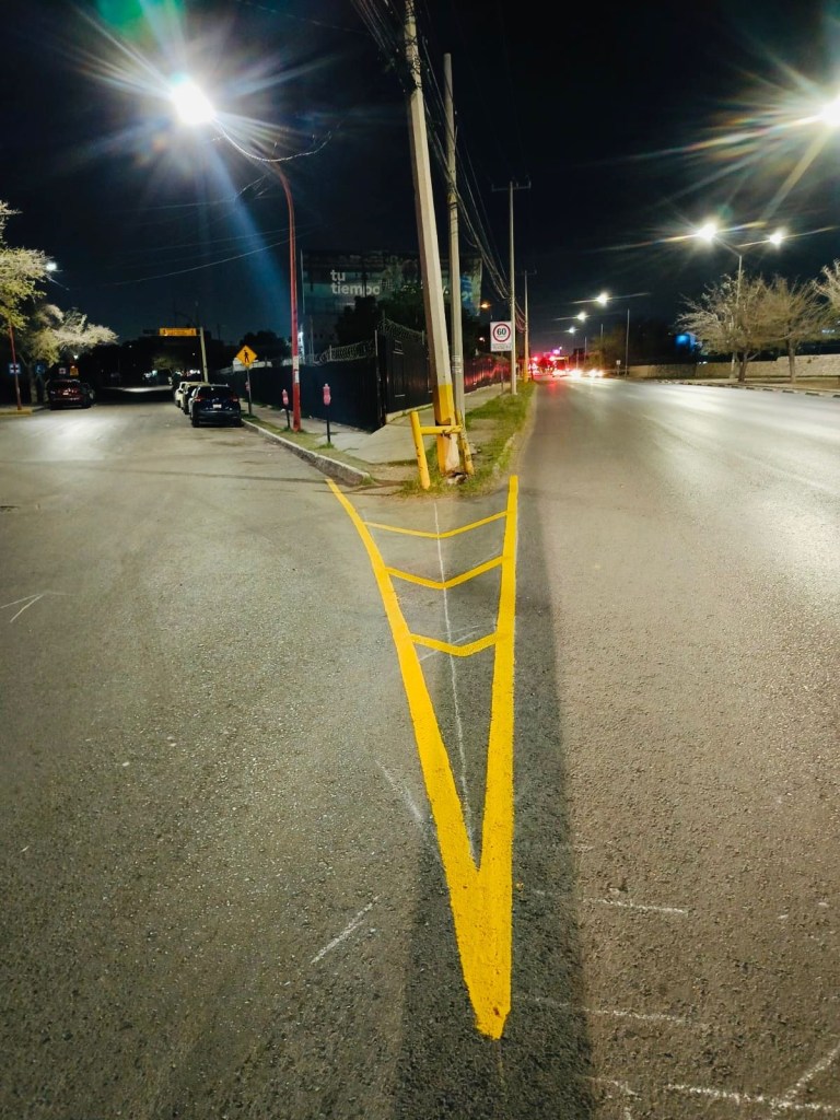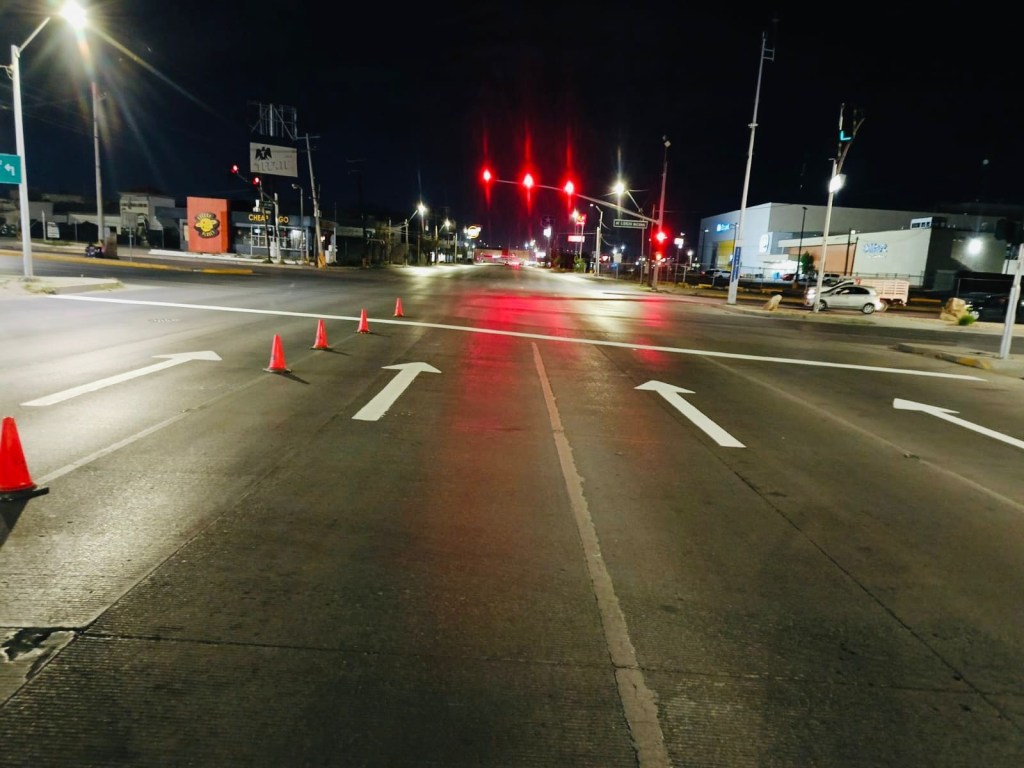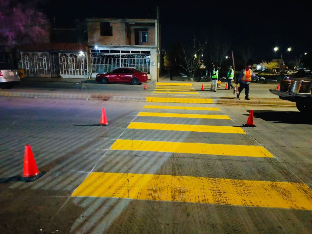 La Coordinación General de Seguridad Vial realizó trabajos de pintura y señalización en diversas vialidades de Ciudad Juárez para mejorar la organización del tránsito y reforzar la seguridad.
