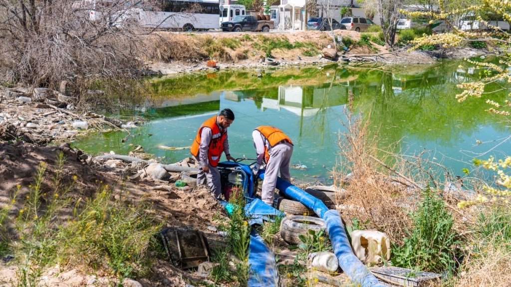 La Junta Municipal de Agua y Saneamiento de Ciudad Juárez inició trabajos de limpieza en el dique ubicado en el cruce de las calles Soja y Aira, en la colonia El Mezquital.