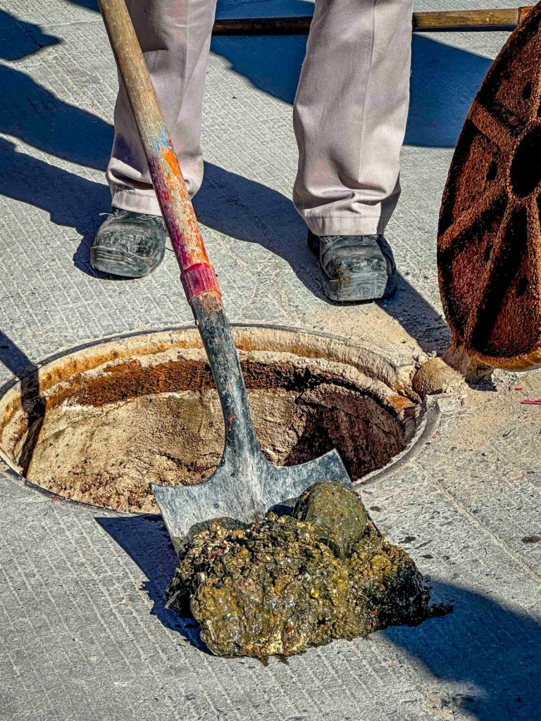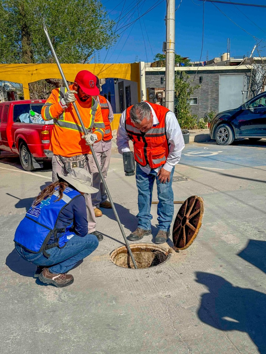 Durante la visita, la ingeniera Paola Moreno y el ingeniero Ismael Corona inspeccionaron calles como Ricardo Montoya, Rafael Terrazas y Salomón Acosta, donde detectaron grasa, pañales, telas y basura en el drenaje.