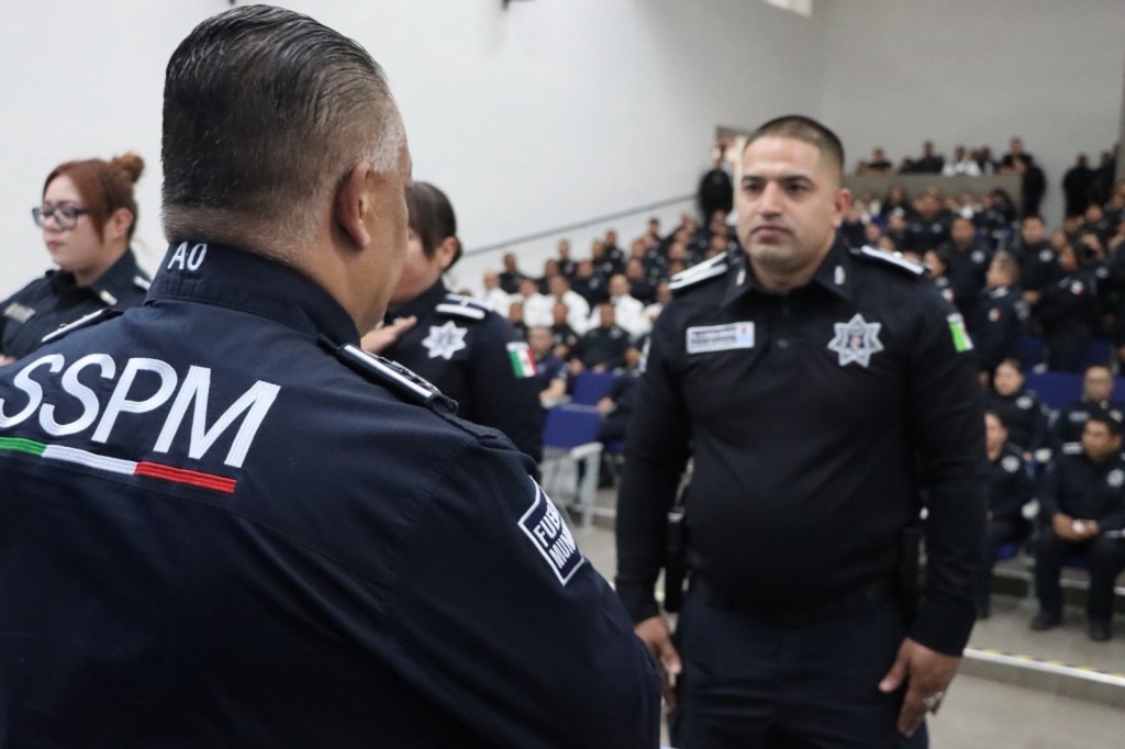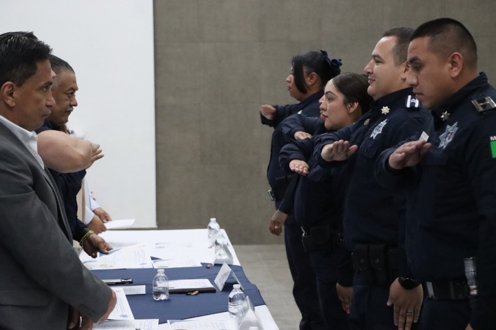 El secretario César Omar Muñoz Morales encabezó la ceremonia en la Academia Municipal de Policía, donde se reconoció también la trayectoria de elementos con 10, 20, y 35 años de servicio.