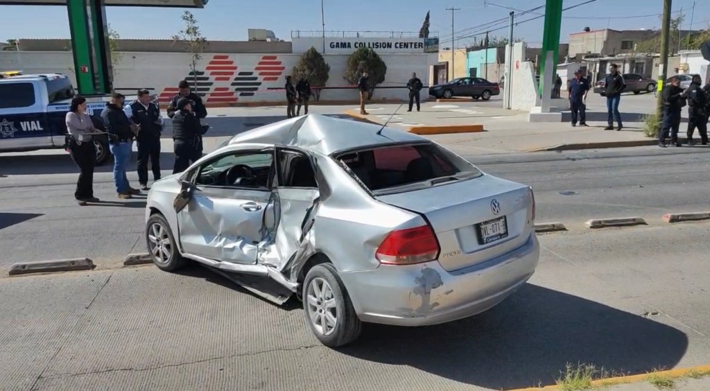 El percance ocurrió en el cruce con la calle Tuna, frente a una gasolinera, cuando el conductor de un Volkswagen Vento color gris intentó incorporarse al carril confinado para realizar una vuelta prohibida.