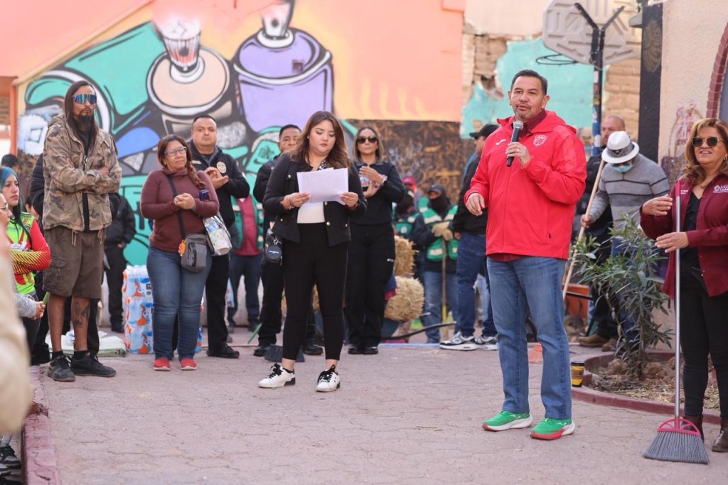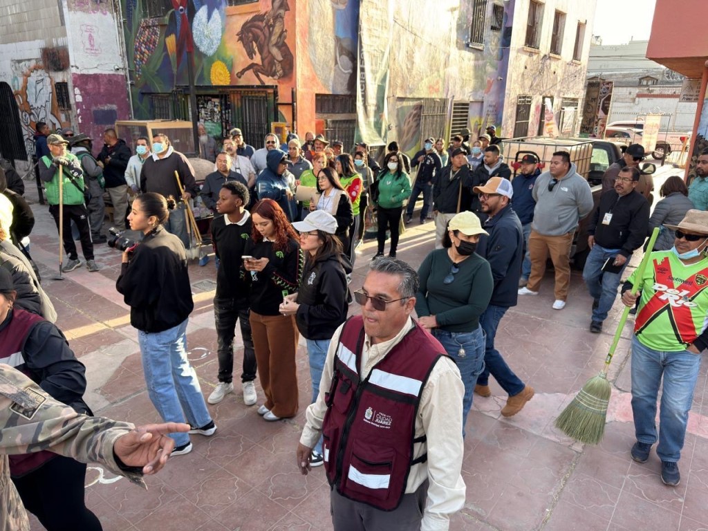 El Gobierno Municipal de Ciudad Juárez, encabezado por Cruz Pérez Cuéllar, realizó una jornada del programa “Juárez Amanece Limpio” en la Plaza Cervantina, con la participación de ciudadanía, colectivos culturales y el FC Juárez.