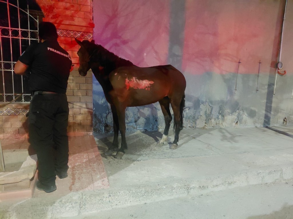Una yegua que resultó gravemente lesionada durante el incendio de una granja en la colonia Santa Rosa se mantiene con vida y en proceso de recuperación bajo atención veterinaria especializada.