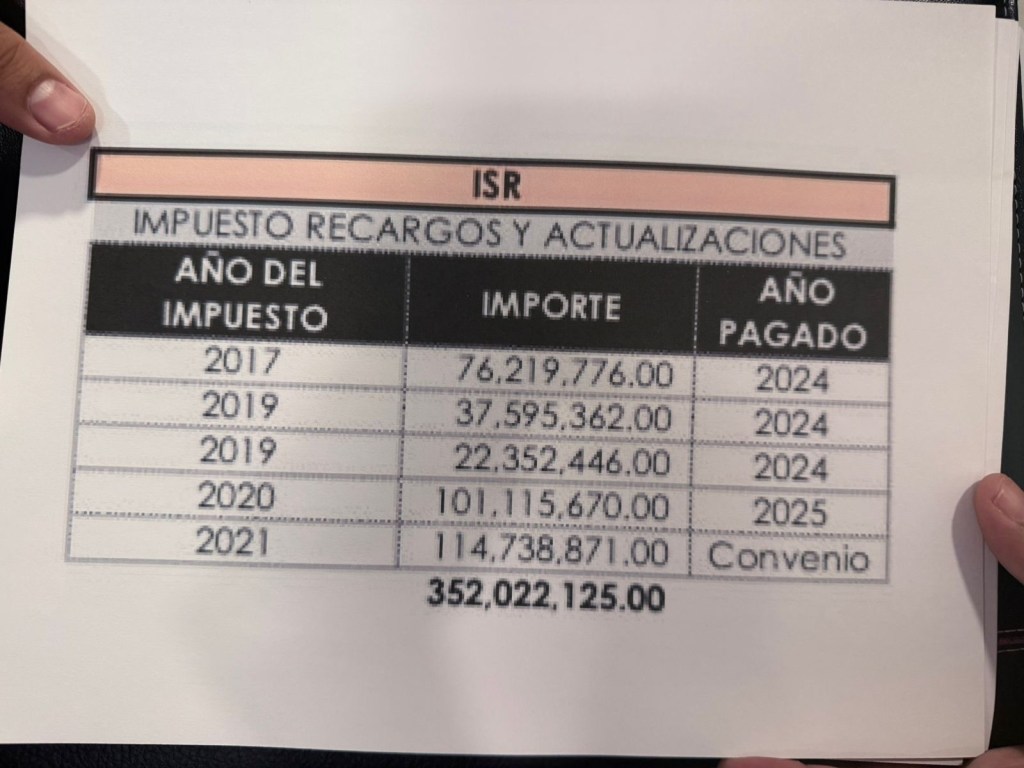 Explicó que el problema corresponde a omisiones en el pago de impuestos entre 2017 y 2021, incluyendo ISR no enterado, y que actualmente buscan un convenio que permita reducir el monto a pagar.