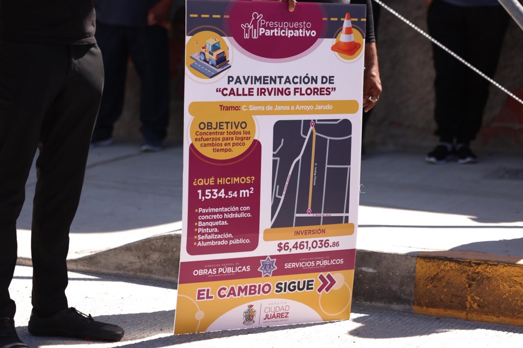La vialidad abarca de Sierra de Janos a Arroyo Jarudo, donde se realizaron trabajos integrales como concreto hidráulico, agua potable, drenaje, banquetas, alumbrado y señalización.