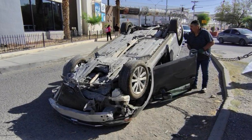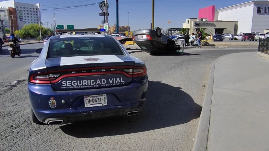 La mañana de este sábado se registró la volcadura de un vehículo sobre la avenida Paseo de la Victoria, a unos metros del consulado americano.