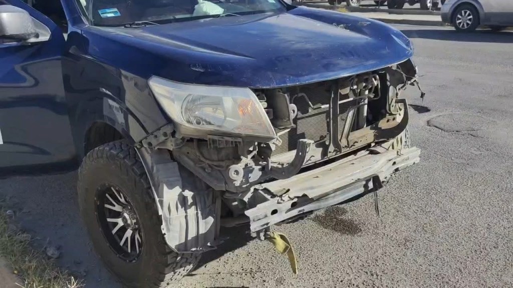 Un fuerte accidente ocurrió esta mañana sobre la Perimetral Carlos Amaya, en el cruce con la calle Borreguero, cuando una camioneta Nissan se incorporó repentinamente a la avenida y corto el paso a un motociclista.