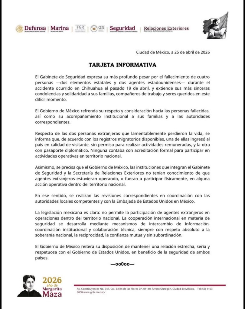 El Gobierno Federal reconoció que agentes de Estados Unidos pertenecientes a la CIA participaron en acciones en Chihuahua sin contar con acreditación formal ni notificación oficial, lo que encendió el debate sobre posibles violaciones a la ley.