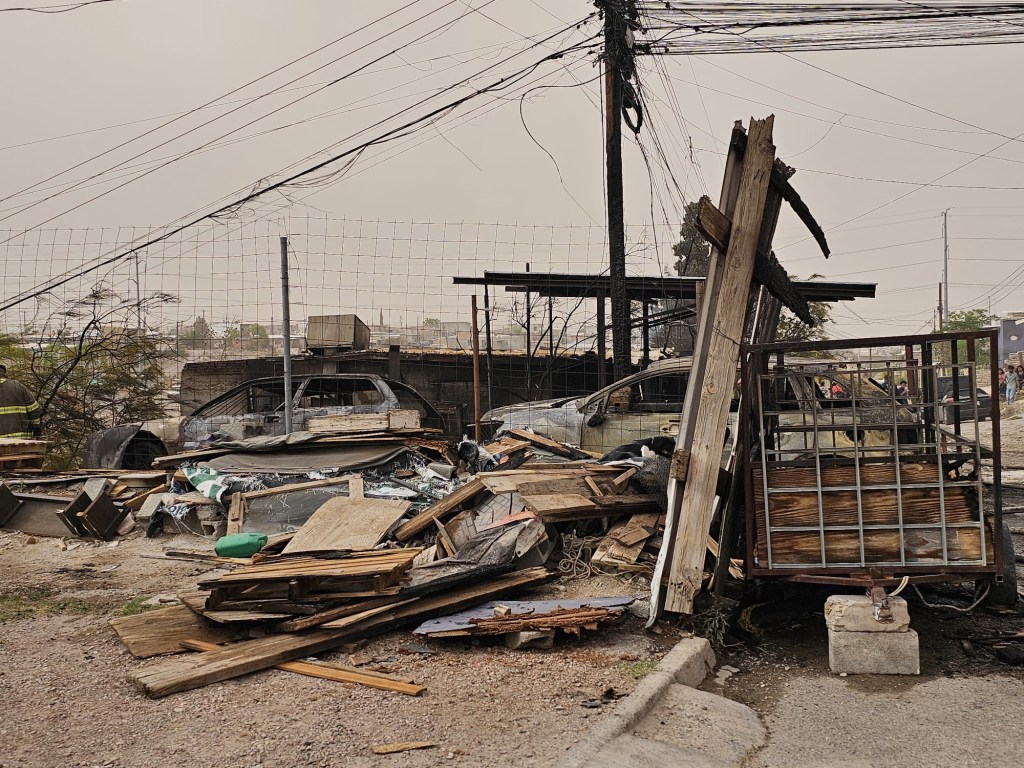 De acuerdo con autoridades, las llamas consumieron varias viviendas, un taller mecánico, dos vehículos, además de un poste de madera y árboles, avivadas por el viento.