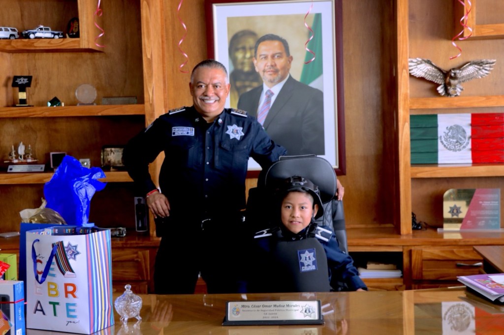 Como parte de las actividades por el Día de la Niñez, el titular de la policía municipal, César Omar Muñoz Morales participó en el programa “Niño y Niña Funcionario por un Día”, junto a estudiantes de la ciudad.